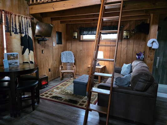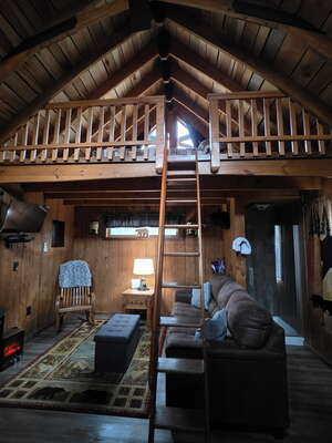 The Oakleaf Treehouse awaits your arrival for a relaxing and romantic getaway! Nestled on the bank of the Stony Fork Creek and the beautiful ponds of the Fernstone Retreat property. Featuring a loft bedroom, and single bathroom adorned in beautifully handcrafted wood work. Relax in the hot tub or on the deck while being bathed in the sounds of nature. Features all the necessary amenities including a small economy kitchen with mini stove-top and small fridge. High-speed Wireless internet and smart TV for streaming your favorite shows.